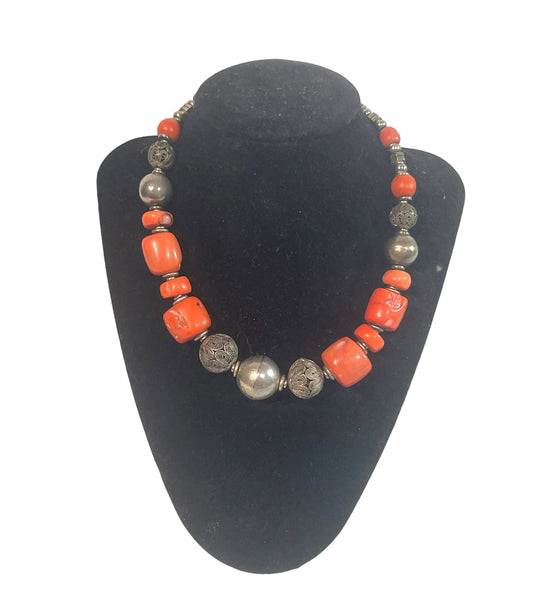 A coral and silver necklace