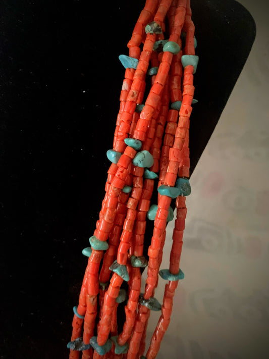 A vintage Native American coral and turquoise necklace