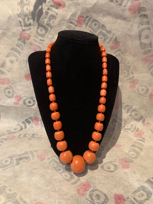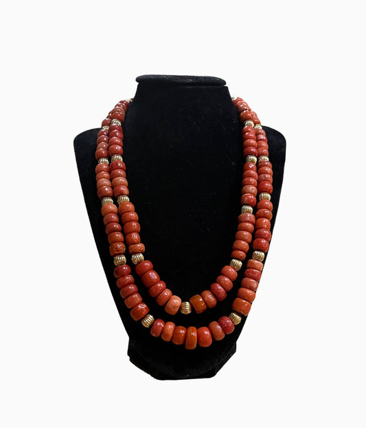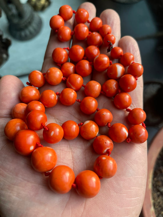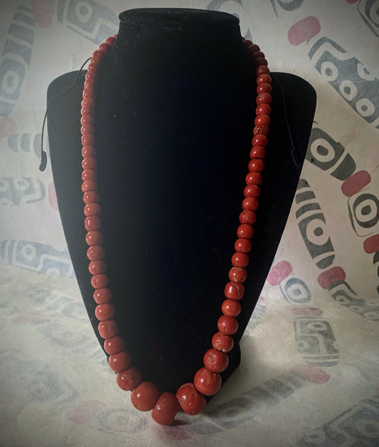 A necklace with vintage momo coral beads