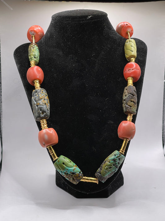 A necklace with vintage carved beads