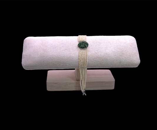 an antique seed pearl and jade plaque bracelet