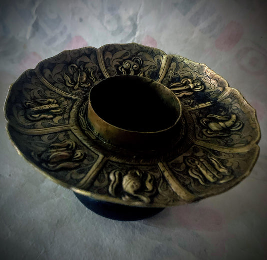 An antique silver kapala stand and cover