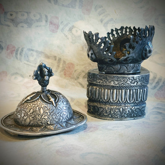 An antique silver incense box with lid