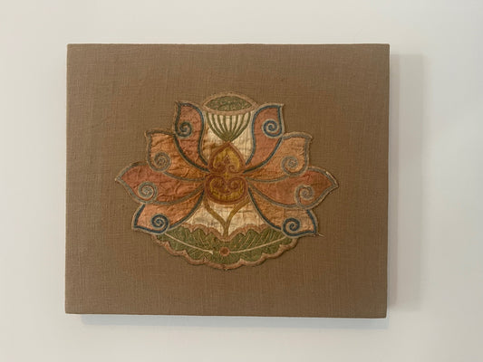 An antique lotus applique art mounted on a fabric frame