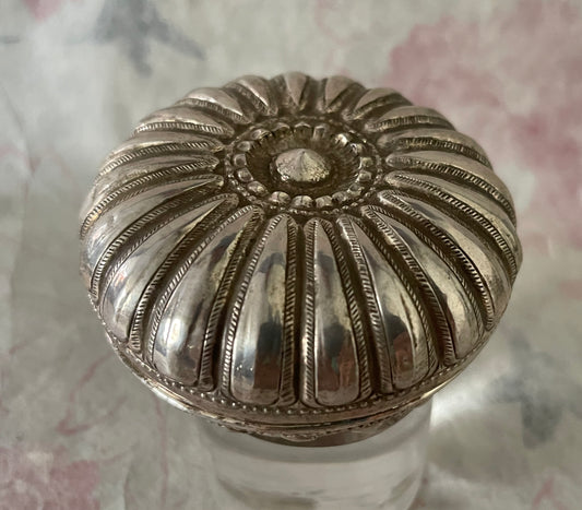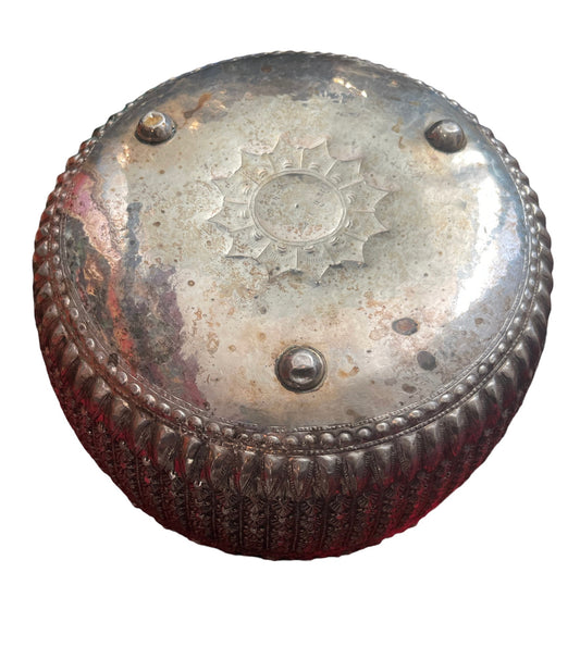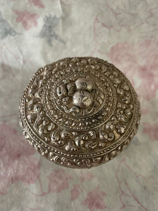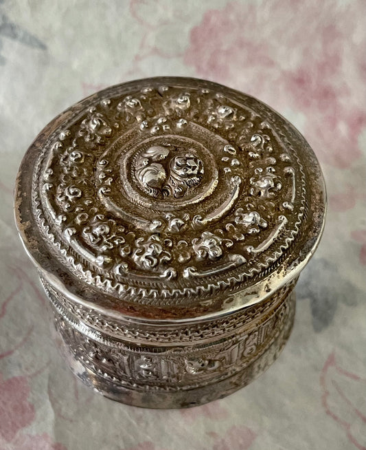 An antique silver south East Asian round box with lid