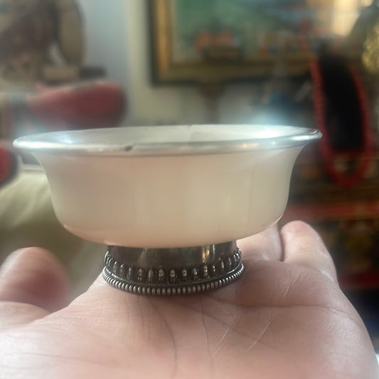 An antique Tibetan animal bone and silver tea cup