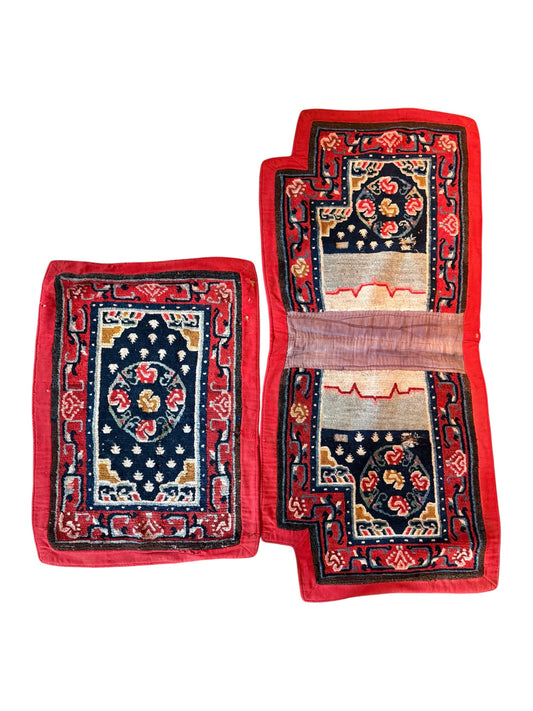 An antique Tibetan saddle rug and rug topper set