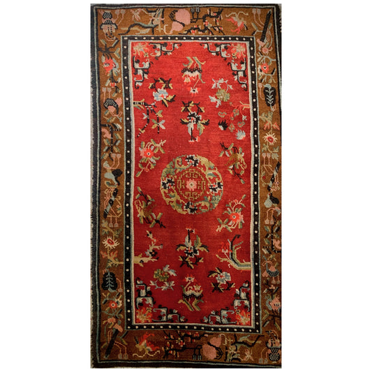 An antique Tibetan wool rug
