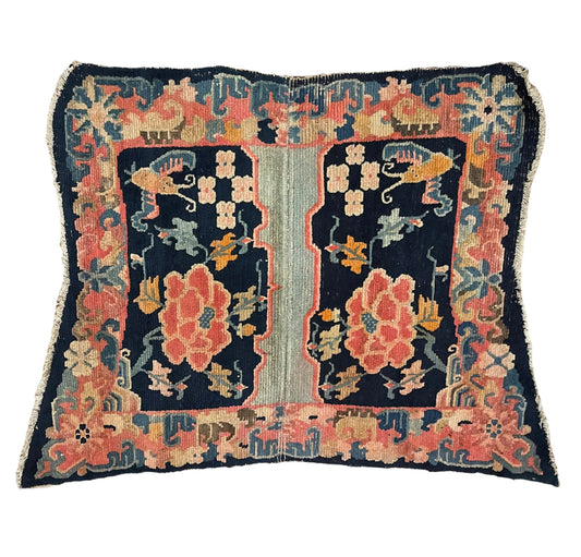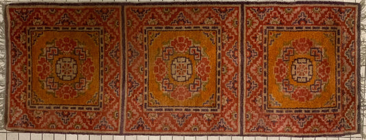 An antique triple seater Tibetan meditation rug