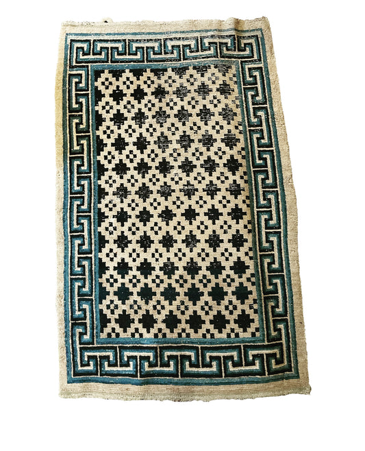 Antique Tibetan wool geometrical vegetable dyed rug