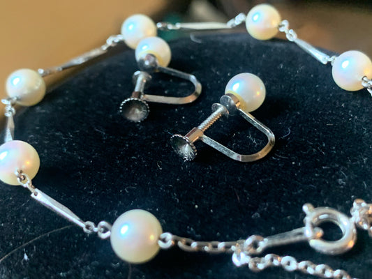 Pearl ear rings and bracelet