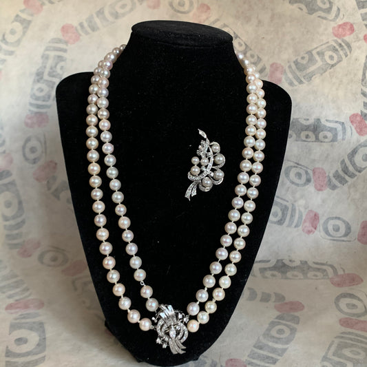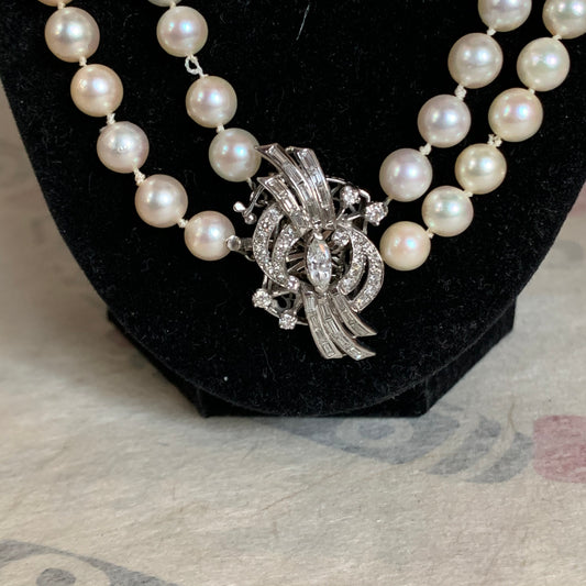 Pearl necklace with diamond clasp