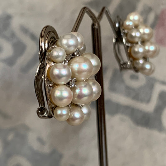 Pearl and diamond ear rings