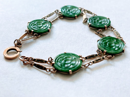 Vintage bracelet with jade in 14kt Art Deco style enamel work.