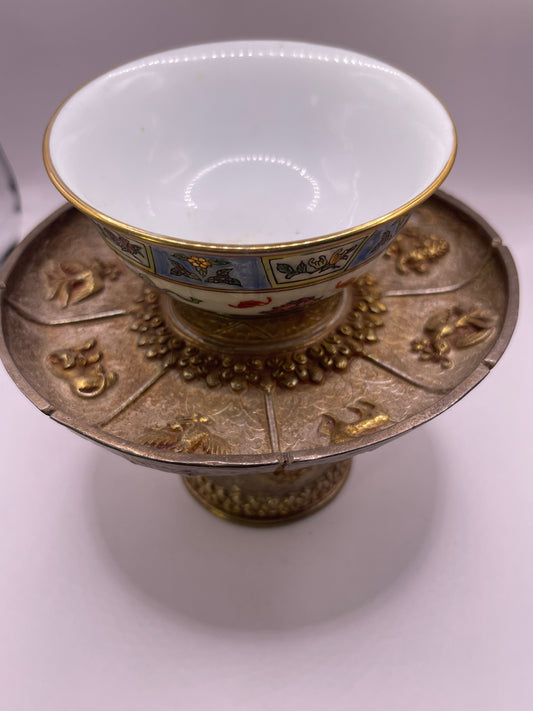 Vintage porcelain cup w/ silver cup stand