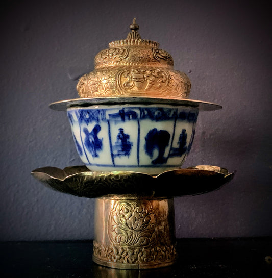 Vintage silver and gilded silver Tibetan cup stand