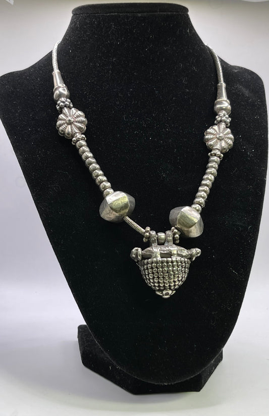 Vintage silver necklace with silver beads from India