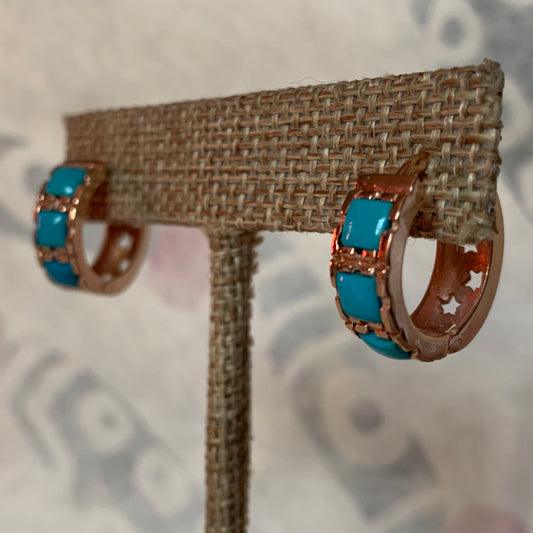 A pair of turquoise hoop earrings