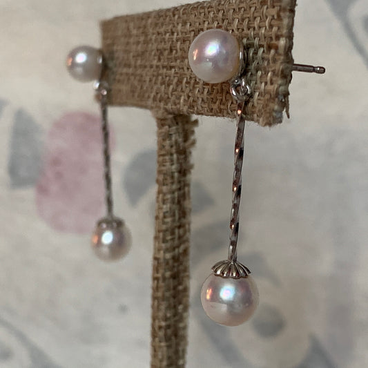 A pair of pearl dangling earrings