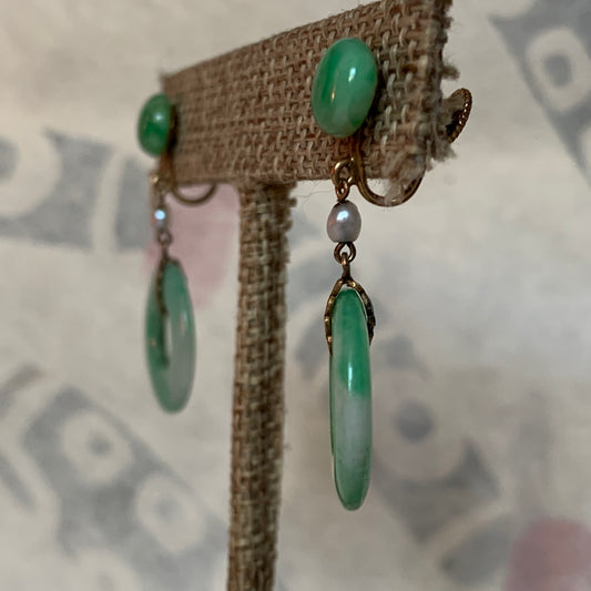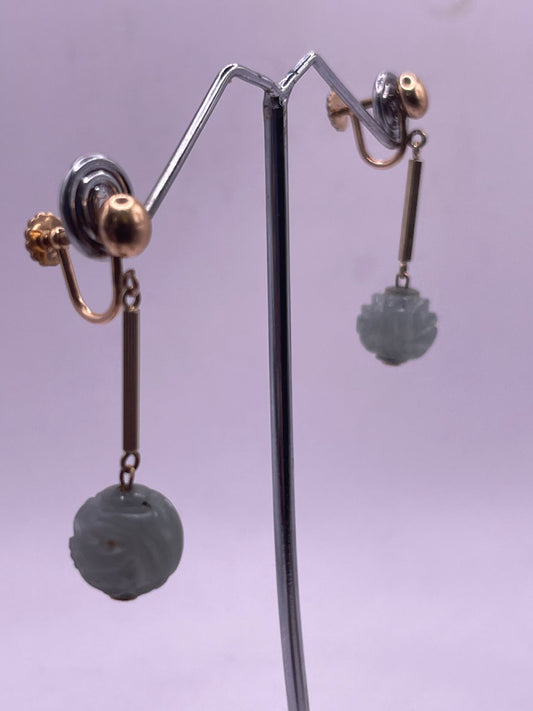 A pair of jade earrings in 14kt gold