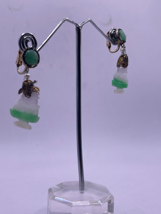 A pair of multicolored jade earrings