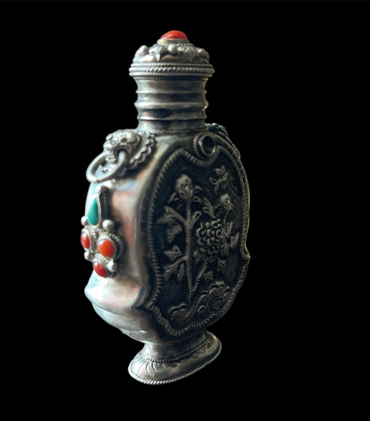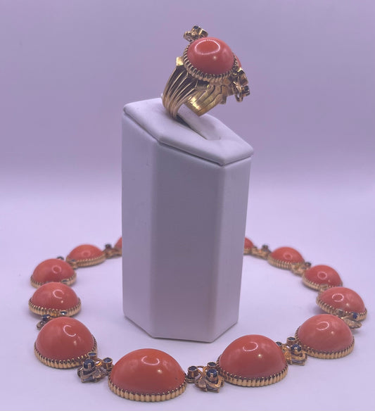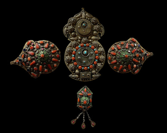 Antique Ottoman silver and gilded silver with coral belt buckle