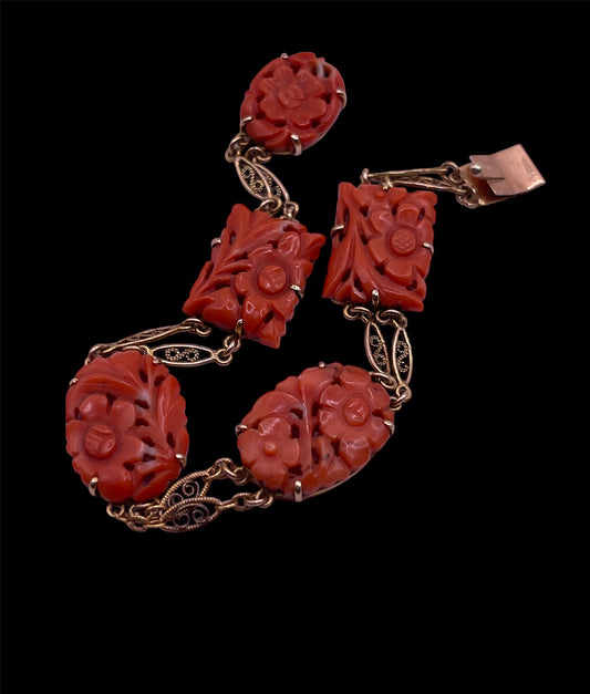 18kt gold, turquoise and sapphire, coral and pearl bracelet