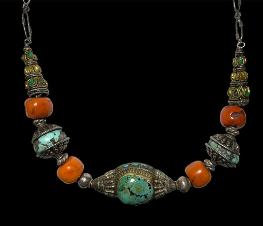 A necklace with antique Tibetan silver beads and coral