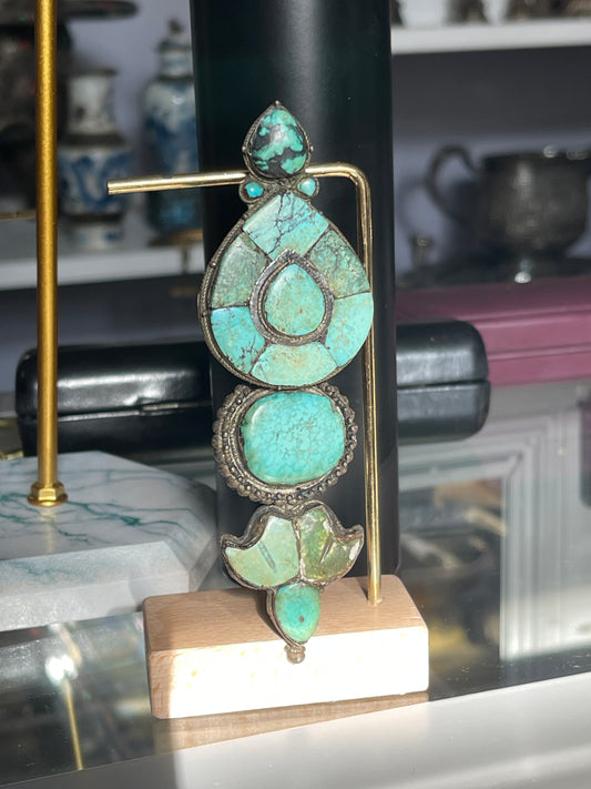 Antique Tibetan turquoise and gold ghau