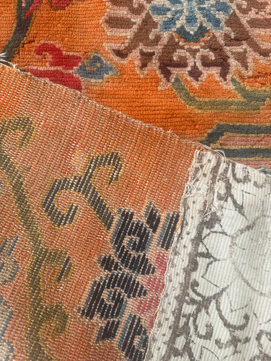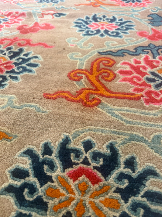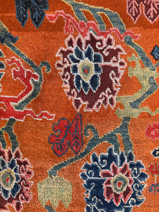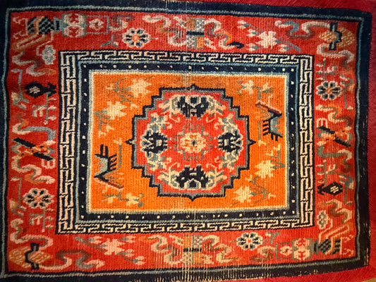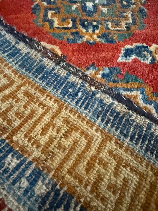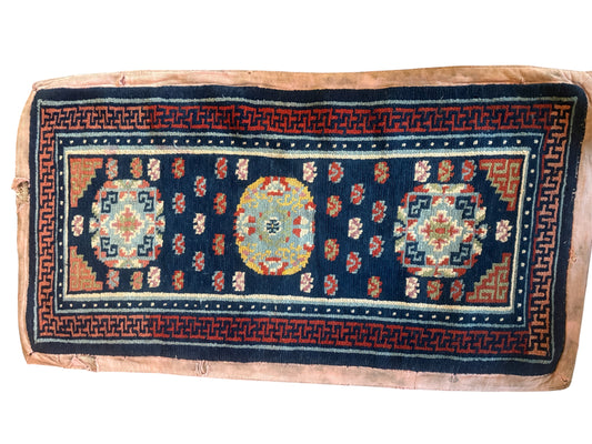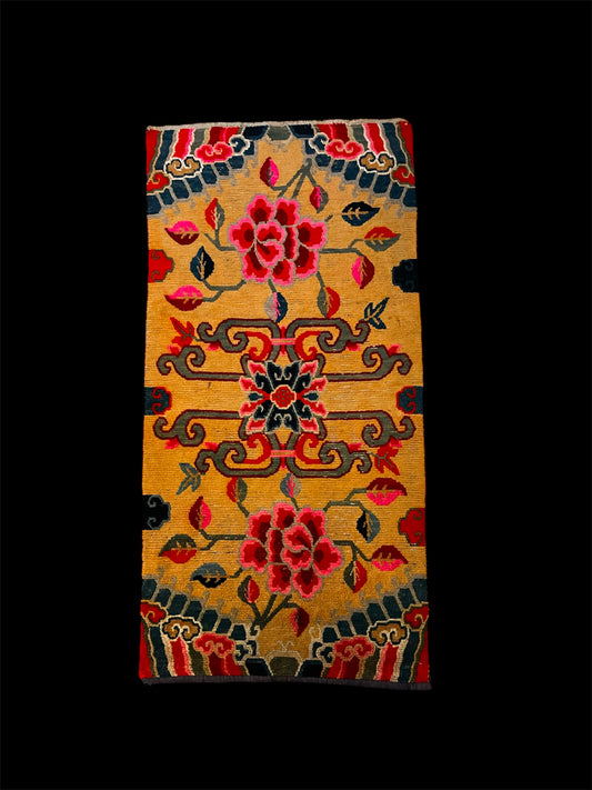 An early to mid 20th C., antique Tibetan floral cushion rug