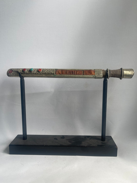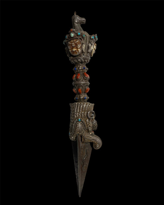 A vintage ceremonial Tibetan dagger in silver and precious stones
