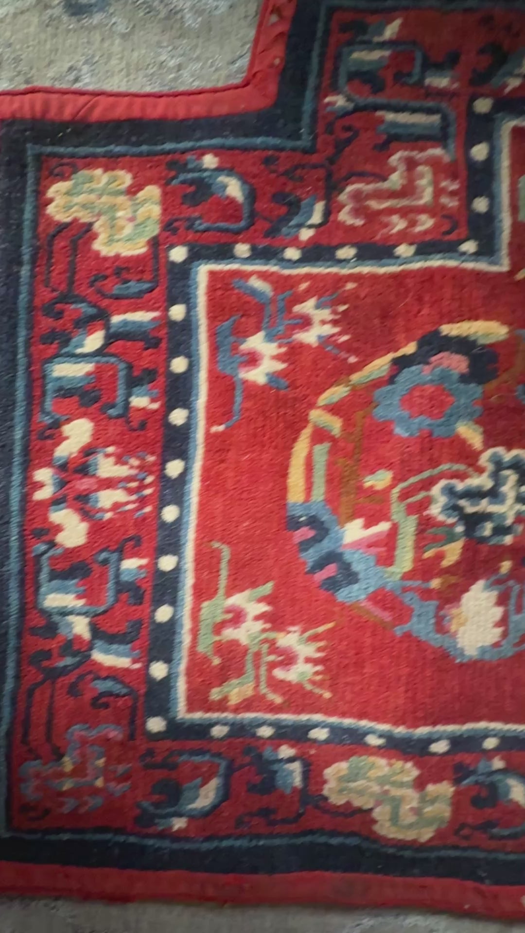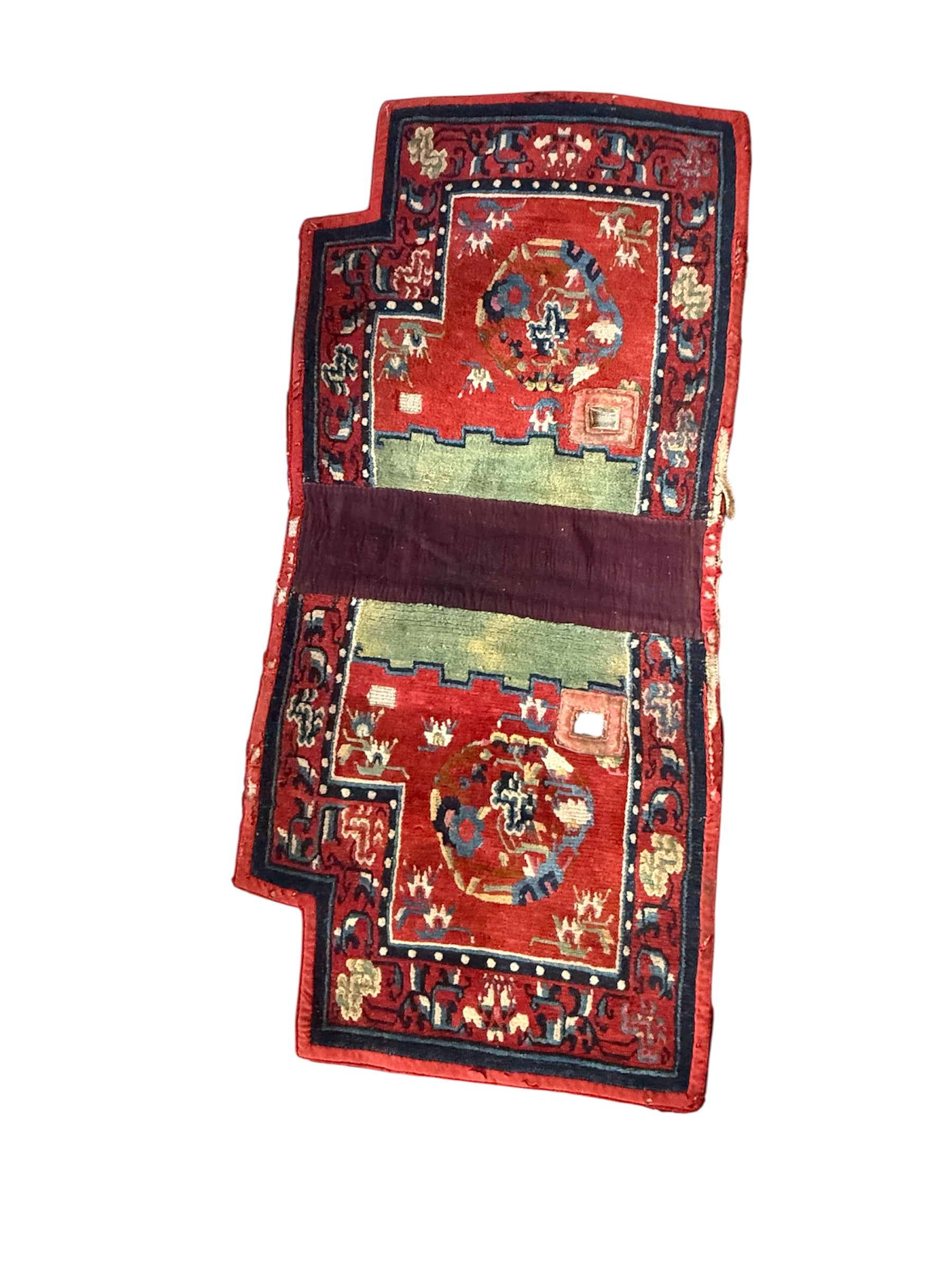 An antique late 19 th C. Tibetan woolen Saddle Rug measuring 2ft 2inx4ft 6 in. (66cmx137cm) .